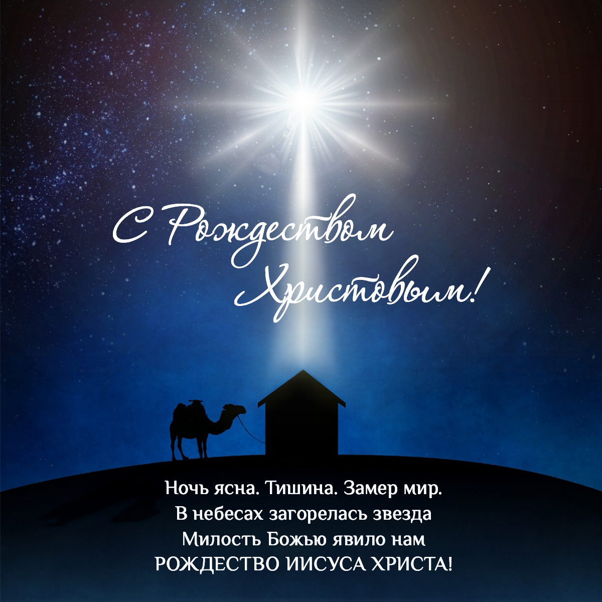 Поздравьте ваших родных, друзей, знакомых со светлым праздником Рождества! Скачайте праздничные открытки или поделитесь ими в мессенджерах и социальных сетях.
